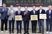 한방통신사 신태공 기자 | 대전시는 5일 시청 중회의실에서 자원봉사활동이 우수한 기업 3곳에 ‘2025년도 자원봉사 우수기업’ 현판을 수여했다. 수여식에는 이장우 대전시장과 김현호 대전시자원봉사센터장, 김영태 대전시자원봉사연합회장을 비롯해 길상원 ㈜건일엔지니어링 대표, 박균익 ㈜아이씨푸드 대표, 장필규 현대프리미엄아울렛 상무와 박재성 대전점장 등이 참석했다. 이번에 현판을 받은 세 기업은 2023년 12월 대전시와 ‘자원봉사 사회공헌 협약’을 체결한 뒤 적극적인 사회공헌 활동을 펼쳐 지난해 12월 ‘자원봉사 우수기업’으로 선정됐다. ㈜건일엔지니어링은 ▲취약계층을 위한 명절 및 김장나눔 행사 후원(매년) ▲지역 내 아동시설에 사랑의 운동화 물품 후원 ▲2025년 영남지역 산불 재난 간식 후원 등 꾸준한 나눔을 실천해 왔다. ㈜아이씨푸드는 ▲추석 명절맞이 온정나눔 후원 ▲제80회 식목일 기념 나무심기 행사 참여 ▲기업과 전통시장이 함께하심 사업 후원(매년) ▲대전시 체육 우수선수 장학금 지급(매년) ▲대전꿈돌이라면 매출액 1% 기부 등 다양한 활동을 이어왔다. 현대프리미엄아울렛 대전점은 ▲