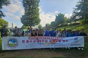 한방통신사 신태공 기자 | 한·중 파크골프 국제교류 행사가 9월 5일부터 7일까지 위해재중대한체육회(회장 배경호)의 초청으로 개최된다. 한국 측에서는 대전중구체육회 파크골프협회(회장 오노균)에서 41명의 대표단이 참가한다. 5일 오전 대전 중구파크골프협회 구장에서 열린 결단식 겸 환송식에서 김제선 중구청장, 오노균 협회장, 오명세 중구체육회 사무국장, 김규철 대표단장 등이 참석해 교류단을 격려했다. 이 자리에서 대표단은 김제선 중구청장을 명예단장으로 위촉하여 행사의 의미를 더했다. 김제선 중구청장은 “국제교류를 추진하고 많은 회원이 함께하는 것은 큰 의미가 있다”며, “건강히 다녀와 좋은 추억을 남기길 바란다”고 축하 인사를 전했다. 오노균 협회장은 “이번 한·중 교류는 회원들의 국제적 안목을 넓히고 사기를 충전하는 계기가 될 것”이라고 강조했다. [뉴스출처 : 대전시 중구]