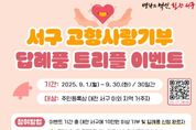 한방통신사 신태공 기자 | 대전 서구는 9월 30일까지 한 달간 ‘서구 아트페스티벌’과 연계한 ‘고향사랑기부 답례품 트리플 이벤트’를 진행한다고 4일 밝혔다. 이번 이벤트는 9월 4일 ‘고향 사랑의 날’을 기념하고, 오는 10월 10일부터 12일까지 개최되는 서구 아트페스티벌과 연계함으로써 고향사랑기부제에 대한 관심과 참여를 늘리기 위해 마련됐다. 주민등록상 대전 서구 외 지역 거주자가 ‘고향사랑e음’ 홈페이지 접속 또는 NH농협을 방문하여, 서구에 고향사랑기부금을 10만 원 이상 기부하고 답례품을 신청하면 자동으로 이벤트에 응모된다. 추첨을 통해 △3만 원 상당의 답례품 추가 제공(50명) △아트페스티벌 개막식 무대 앞 좌석 및 스탠딩석 제공(80명) 등의 혜택이 주어진다. 서철모 청장은 “고향사랑기부제가 지역 발전을 위한 소중한 재원으로 자리매김할 수 있도록 다양한 참여 기회를 마련하고 있다”며 “이번 이벤트가 기부 문화 확산과 함께 서구 아트페스티벌의 열기를 더하는 계기가 되기를 바란다”고 말했다. 고향사랑기부제는 개인의 주민등록상 주소지를 제외한 다른 지자체에 연간 최대 2,00