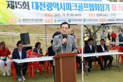 한방통신사 신태공 기자 | 대전시의회 조원휘 의장은 25일 갑천파크골프 1구장(유성구 탑립동)에서 개최된 제15회 대전광역시협회장배 파크골프대회에 참석해 안전한 대회 진행을 기원하며, 일류 체육도시 대전 조성을 위한 정책적 관심과 지원을 약속했다. 이날 대회는 지역을 대표하는 단체·기관장, 임원 및 선수, 시민 등 350여 명이 참석한 가운데 시 협회장의 대회사, 주요내빈 축사, 기념촬영 등의 개회식을 마친 뒤 남녀와 시니어·일반부로 나눠 18홀 스트로크 방식의 본격적인 대회로 이어졌다. 조원휘 의장은 “대전에는 유등천, 갑천, 을미기공원 등 6곳, 총 99홀의 파크골프장이 운영되고 있으며, 시민들의 참여가 늘면서 이제는 파크골프가 대전의 대표적 생활체육으로 자리잡았다”면서, “시민들의 관심과 수요가 커지는 만큼 동구 용운동에 2026년 12월까지 4,600여 평, 성북동에 2029년까지 최대 90홀 규모의 파크골프장이 조성되는 등 대전시의회는 시민들의 체육인프라 조성에 많은 노력을 기울이고 있고, 앞으로도 시민 모두가 파크골프를 비롯한 다양한 생활체육을 언제, 어디서나 즐길 수 있도록 의회 본연의 역할에 최선을 다하겠다”