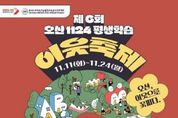 한방통신사 신유철기자 기자 | 오산시는 오는 11월 11일부터 11월 24일까지 2주간 ‘2025년 제6회 1124 오산 평생학습 이웃축제’를 개최한다고 밝혔다. ‘1124’는 ‘나 혼자(1혼자1혼자) 즐기는 평생학습에서 이웃사촌(2웃4촌)이 함께하는 평생학습’을 의미하며, 올해 축제는 ‘오산, 이웃으로 꽃피다’를 주제로 40여 명의 이웃축제 추진단이 직접 기획과 운영에 참여해 시민 주도의 학습 축제로 꾸며질 예정이다. 이번 축제는 ▲징검다리 이웃초대 ▲동평생학습센터 ▲성인문해 글꽃마당 ▲브릿지 클래스 등 4개 분야, 총 180여 개의 프로그램으로 구성되며, 관내 220여 개 징검다리교실을 비롯한 다양한 평생학습 공간에서 진행된다. 특히 ‘징검다리교실’은 집 앞 10분 거리 내에서 시민 누구나 학습 공간으로 이용할 수 있는 공유형 학습 플랫폼으로, 2024년 전국평생학습도시 페스티벌에서 ‘좋은 정책 어워즈’ 장려상을 수상하는 등 전국적으로 우수한 정책으로 평가받고 있다. 축제 프로그램 참여 신청은 11월 3일부터 오산시 교육포털 ‘오산e’를 통해 선착순으로 접수할 수 있으며, 시민 누구나 참여 가능