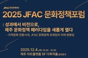 한방통신사 신유철기자 기자 | 제주문화예술재단(이사장 김석윤)은 '다시 심는 성과, 피어나는 비전'이라는 슬로건으로 '2025년 재단 성과공유주간(이하 성과공유주간)'을 개최한다. 프로그램은 제주아트플랫폼(5층)에서 12월 4일부터 6일까지 3일간 진행된다. 이번 성과공유주간은 2025년 한 해의 재단 지원을 받아 이루어진 예술창작 활동과 도민 문화 참여 활동의 결실을 함께 확인할 수 있는 자리이다. 아울러 지역문화 전환 시대에 재단의 문화정책 미래 방향에 대한 담론을 나누는 시간도 마련한다. 세부 프로그램으로는 ▲문화정책포럼, ▲예술활동 쇼케이스, ▲전시, ▲도민 체험프로그램으로 문화예술을 사랑하는 도민, 예술인 누구나 참여할 수 있다. 문화정책포럼은 〈성과에서 비전으로, 제주 문화정책 패러다임을 새롭게 열다〉를 주제로 개최한다. 포럼은 ▲기조발제 ‘키워드로 보는 지역문화 정책 방향(장세길 전북연구원 선임연구위원)’, ▲주제발표① ‘생활문화예술활동 지원 성과로 보는 미래 정책적 역할(현혜경 제주연구원 부연구위원)’, ▲주제발표② ‘서울 ’新대학로 시대‘ 사례로 보는 물리적 거점 기반 시민 문화참여권 확대 방안(장재환 서