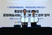 한방통신사 신유철기자 기자 | 제주문화예술재단과 주택관리공단 제주지사는 지난 13일 통합문화이용권 사업(문화누리카드)과 연계한 문화예술 서비스 확대를 위해 업무협약을 체결했다. 재단과 주택관리공단은 향후 △문화소외지역(임대단지)·계층의 문화예술 향유 기회 확대를 위한 협력 및 정보 공유 △문화 향유권 신장 △문화 양극화 해소를 위한 협력 활동을 해 나갈 예정이다. 이날 주택관리공단 김영일 지사장은“제주 내 12개 공공임대 주택단지(총 4,536세대)의 입주민들이 다양한 문화예술 프로그램에 참여할 수 있는 기반이 마련되고, 지역 내 문화복지의 폭이 한층 넓어질 것으로 기대된다”라며 협약체결에 대한 의지를 밝혔다. 이에 재단 김석윤 이사장은 “임대주택단지 입주민 등 문화소외지역 거주자에게 다양한 문화예술 참여 기회를 제공하고, 지역의 문화 향유권을 높이며 문화 격차 해소를 위해 함께 노력하자”라고 화답했다. 이번 업무협약으로 정부의 국정과제인‘보편적 문화복지 실현’과 연계해 문화 취약계층의 삶의 질 향상과 입주민들에게 다양한 문화예술 향유 기회를 제공하여 정서적 안정과 공동체 활성화에도 긍정적인 효과