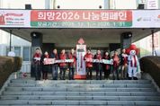 한방통신사 신유철기자 기자 | 지난 12일 여주시와 경기 사회복지공동모금회는 연말연시 나눔문화 확산을 위한'희망2026 나눔캠페인'의 시작을 알리는 사랑의 온도탑 제막식을 개최했다. 이번 캠페인의 슬로건은 “행복을 더하는 기부, 기부로 바꾸는 여주”로 이충우 여주시장, 박두형 여주시의회 의장 및 시의원, 김효진 경기 사회복지공동모금회 사무처장 등 10여명이 참석하여 제막식과 슬로건 피켓팅을 통해 홍보활동을 진행했다. '희망2026 나눔캠페인'은 2025년 12월 1일부터 2026년 1월 31일까지 62일간 여주시 지정기탁 모금액 4억원을 목표로 각 읍면동 및 본청에서 모금을 접수하며, 목표액의 1퍼센트인 4백만원의 성금이 모금될 때마다 사랑의 온도탑의 온도가 1℃씩 올라간다. 집중모금기간동안 모금된 성금 등은 사회복지공동모금회를 통해 여주시 지정기탁금 계좌로 적립되어 관내 취약계층 및 사회복지시설 등을 위한 복지사업의 재원으로 소중히 사용될 예정이며, 많은 시민들의 관심과 참여를 촉구하는 뜻깊은 자리였다. [뉴스출처 : 경기도 여주시]