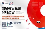 한방통신사 신유철기자 기자 | 통일부는 9월 26일 13시, 경기권 통일플러스센터(의정부시 소재)에서 다양한 관점을 가진 청년 70여 명이 모여 ‘광복 80주년과 청년의 역할’을 주제로 '제3차 청년 대상 합의 형성 토론회'를 개최한다. 광복 80주년을 기념하여 개최되는 본 토론회에서는 통일 미래세대인 청년들이 평화·통일에 대해 적극적으로 의견을 주고받으며, 많은 사람들이 공감할 수 있는 통일 담론을 그려나가는 시간을 갖고자 한다. 분임토론에서는 ‘역사의 주체’이자 ‘미래의 설계자’인 청년의 관점에서 통일의 필요성에 대해 이야기를 나누어보고, 미래에 맞이할 광복 100주년의 모습도 자유롭게 그려볼 예정이다. 통일부는 경기권 통일플러스센터에서 개최되는 첫 행사인 본 토론회를 계기로, 경기 센터가 ‘통일행정의 종합 플랫폼’이자 지역 주민과 함께 한반도 평화의 비전을 실현해 나가는 공간으로 발전해 나가길 기대한다. 또한 통일부는 앞으로도 청년들의 통일·대북 정책에 대한 다양한 의견을 수렴하며 지속 가능한 평화·통일정책을 수립하고 추진해 나갈 것이다. [뉴스출처 : 통일부]