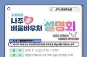 한방통신사 신다은기자 기자 | 전남 나주시가 시민 누구나 평생학습에 참여할 수 있는 환경 조성을 위해 올해 ‘나주애(愛) 배움바우처’ 사업 운영 방향을 시민들과 공유한다. 나주시는 오는 13일 오후 1시 복합문화체육센터 1층 세미나실1(빛가람동 199)에서 ‘2026년 나주애(愛) 배움바우처 설명회’를 개최한다고 6일 밝혔다. 이번 설명회는 배움바우처 등록기관과 참여를 희망하는 교육기관, 나주시민 누구나 참석할 수 있으며 2026년 사업 운영계획 안내와 함께 현장 의견을 청취하는 소통의 장으로 마련된다. ‘나주애(愛) 배움바우처’는 2023년 전라남도 최초로 도입된 시민 평생학습 지원사업으로 올해 4년째를 맞는다. 시는 올해도 5천 명의 시민을 대상으로 1인당 15만원 상당의 바우처 카드를 지원해 컴퓨터 활용, 외국어, 취미와 문화 강좌, 자격증 과정 등 다양한 분야의 학습 프로그램을 자유롭게 선택해 참여할 수 있도록 운영할 계획이다. 지난해에는 200여 개 교육기관이 참여해 500여 개 프로그램이 운영되는 등 시민 평생학습 참여 기반이 꾸준히 확대되고 있다. 이번 설명회에