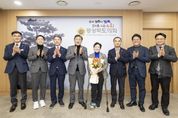 한방통신사 신유철기자 기자 | 씨름판의 살아있는 전설, '노또장(노범수가 또 장사 했다)' 노범수 선수가 군입대를 앞두고 할아버지가 거주하는 대구 군위군을 찾아 승리의 기쁨을 나눴다. 최근 의성군에서 열린 '2025 의성 천하장사 씨름 대축제'에서 통산 25번째 황소 트로피를 들어 올린 노범수는 지난 10일, 본격적인 군 복무를 앞두고 고향과도 같은 군위군을 방문해 김진열 군위군수와 면담의 시간을 가졌다. 이날 방문에는 노범수 선수의 든든한 지원군인 큰아버지 노종호 씨와 큰어머니 민순옥 씨가 동행해 그 의미를 더했다. 노범수는 군위에 거주하시는 할아버지를 뵙고 손자의 영광스러운 우승 소식을 직접 전하기 위해 방문한 것으로 알려졌다. 김진열 군위군수는 면담 자리에서 "태백급 최다 타이틀 보유자이자 씨름계의 보물인 노범수 선수가 입대 전 바쁜 일정 속에서도 군위를 찾아주어 매우 기쁘다"며 "군위에 계신 할아버지께서도 손자의 활약에 큰 자부심을 느끼실 것"이라고 격려했다. 이어 "군 생활 건강하게 잘 마치고 돌아와 다시 한번 씨름판을 호령해달라"고 응원했다. 노범수 선수는 "할아버지가 계신 군위는 늘 마