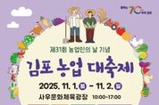 한방통신사 신유철기자 기자 | 김포시가 오는 11월 1일부터 2일까지 사우문화체육광장에서 '제31회 농업인의 날 기념 김포농업 대축제'를 개최한다. 이번 행사는 ‘오늘을 심어 내일을 키우는 通(통)하는 김포농업’을 주제로, 제31회 농업인의 날 기념식, 인삼축제, 금빛나루행사, 축산물 시식 및 홍보 행사를 통합하여 추진된다. 기념식은 11월 1일 오전 10시 30분부터 진행되며, 식전공연과 함께 김포 농업 발전에 기여한 우수농업인 표창이 진행된다. 농업인과 유관기관 관계자, 시민 등 2,000여 명이 참석할 예정으로, 농업인의 노고를 격려하고 농업의 중요성을 공유하는 뜻깊은 자리가 될 것으로 보인다. 행사장에서는 농업 관련 기관과 단체가 참여하는 체험·전시·판매 행사가 다채롭게 진행된다. 특히 농·축산물 직거래 판매와 시식 행사, 금쌀 떡볶이 체험, 시민 참여 김장행사, 장기자랑 등 시민이 직접 참여할 수 있는 프로그램이 마련되어 큰 호응이 기대된다. 김포시 관계자는 “김포농업 대축제 행사는 농업인들의 노고를 격려하고, 도시민과 농업인이 함께 어울리는 화합의 장”이라며 “앞으로도 지속 가능한 김포농
