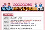 한방통신사 양호선기자 기자 | 화천군이 올해 처음으로 지역 초중고교 신입생들에게 입학 축하금을 지급한다. 군은 3월 3일부터 31일까지, 2026년 입학 축하금 신청을 접수한다. 축하금 귶모는 초등학생 30만원, 중학생 40만원, 고교생 50만원이다. 지원대상은 입학일부터 신청일 현재까지, 화천군에 주민등록을 두고, 지역 내 초중고교에 입학하는 1학년 학생이다. 타 시군에서 초중교 입학 후 화천지역으로 전입한 전학생, 입학생 등은 대상에서 제외된다. 지급기한은 4월말까지며, 사용기한은 올해 연말까지다. 신청은 입학생의 부모, 후견인, 양육자 등이 할 수 있으며, 온라인 혹은 입학생 주민등록 소재 읍면사무소를 방문해 접수할 수 있다. 축하금은 신청인의 화천사랑카드 계좌로 입금되며, 문구점, 학원, 서점 등 별도 지정된 입학 관련 지역업체에서 사용할 수 있다. 화천사랑카드는 스마트폰에 어플리케이션 ‘지역상품권 chak’ 설치 후 농협군지부, 신협, 사내면 새마을금고 등 지역 금융기관을 방문해 신청 후 발급받을 수 있다. 이 외에도 화천군은