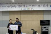 한방통신사 신태공 기자 | 아산시 온양6동 행복키움추진단은 16일 온양6동 도시재생주민협의체로부터 프리마켓 ‘온주시장’을 통해 마련한 수익금 100만원을 후원금으로 전달받았다. 이번 후원금은 취약계층 지원 및 지역사회 복지 향상을 위한 행복키움추진단의 복지사업에 사용될 예정이다. 허춘옥 회장은 “온주시장은 주민이 자발적으로 기획하고 운영하는 지역공동체 기반 장터로, 주민 간 신뢰와 연대감을 높이는 의미 있는 공간”이라며 “이번 수익금이 어려운 이웃에게 도움이 되길 바라며, 앞으로도 따뜻한 나눔 문화가 확산될 수 있도록 노력하겠다”고 말했다. 이범영 민간단장은 “도시재생주민협의체에서 전달해주신 소중한 후원금은 복지 사각지대 해소와 취약계층 지원을 위한 다양한 사업에 소중히 사용하겠다”며 “민‧관이 함께하는 지역사회 돌봄 체계를 더욱 강화하겠다”고 밝혔다. 이순주 공공단장은 “주민이 함께 만들어가는 온주시장을 통해 이웃을 위한 나눔이 실천되고 있는 점에 깊이 감사드린다”며 “행정복지센터에서도 지역 복지 향상과 주민 참여 활성화를 위해 지속적으로 협력하겠다”고 전했다. [뉴스출처 : 충청남도 아산시]