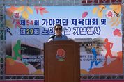 한방통신사 신유철기자 기자 | 합천군 가야면은 26일 해인중학교 운동장에서 제54회 가야면민체육대회 및 제29회 노인의 날 기념행사를 개최했다. 가야면 체육회(회장 임재후)가 주최하고 대한노인회 가야면분회(회장 김상원)가 주관한 이번 행사는 기념식과 체육행사, 문화공연 순으로 진행됐으며, 김윤철 합천군수와 신성범 국회의원, 장진영 경상남도의회의원, 신명기, 조삼술 합천군의회의원 등을 비롯한 지역 어르신 800여명이 참석했다. 이날 기념식에서는 그간 우리 지역의 노인복지 증진과 지역발전을 위해 헌신해 온 한판명 사촌1구 경로당 회장 외 10명에 대한 표창 및 감사패와 지역의 체육발전에 공헌한 학생에 대한 장학금이 수여됐다. 임재후 가야면 체육회장은“본 행사를 위해 바쁘신 중에도 참석하여 자리를 빛내주신귀빈 여러분들께 감사드리며, 이 행사를 준비해주신 여러 관계자분들에게도 감사드린다. 본 행사를 통해 가야면의 건강과 화합을 다지고, 어르신들도 건강하고 의미있는 시간이 되시기를 바란다”며 축사를 전했다. [뉴스출처 : 경상남도 합천군]