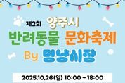 한방통신사 신유철기자 기자 | ㈜빅프렌즈가 주관하는 ‘2025년 양주시 반려동물 문화축제’가 오는 26일 옥정동 선돌근린공원에서 열린다. 이번 축제는 반려동물 보호자와 시민이 함께 즐기고 배우며, 반려동물 관련 산업과 단체가 교류하는 ‘반려동물 친화도시 양주’ 실현의 장으로 마련됐다. 특히 지난해보다 참여 기관과 단체가 대폭 확대돼 더욱 풍성한 프로그램이 준비됐다. 축제는 오전 10시부터 오후 6시까지 진행되며 ▲반려동물 체험부스 ▲관련 기업 홍보관 ▲시민 참여형 이벤트(이색 장기자랑, 강아지 모델 선발대회 등) ▲푸드트럭 ▲럭키드로우 추첨 등 다채로운 프로그램이 운영된다. 시 관계자는 “이번 축제를 통해 반려동물과 시민이 함께하는 건전한 문화가 확산되길 기대한다”며 “많은 시민들의 관심과 참여를 부탁드린다”고 말했다. [뉴스출처 : 경기도 양주시]