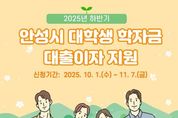 한방통신사 신유철기자 기자 | 안성시는 오는 10월 1일부터 11월 7일까지 ‘2025년도 하반기 안성시 대학생 학자금 대출이자’ 지원 신청을 받는다. 지원 대상은 공고일(2025. 10. 1.)기준으로 안성시에 주민등록 주소를 두고 재학(휴학 포함)중인 대학(원) 재학생(휴학생)이다. 지원 대상자로 선정되면 대상자가 한국장학재단에서 대출받은 학자금에 대한 2025년 상반기(1월~6월) 발생 이자를 안성시가 지급하게 된다. 지급은 대출 계좌 원리금에서 차감하는 방식으로 진행되며, 지원 내역은 12월 지급이 확정된 시점에 한국장학재단 인터넷 홈페이지에서 확인할 수 있다. 신청 방법은 주소지 읍·면·동 행정복지센터 또는 안성시청(미래교육과)으로 방문하여 접수하면 된다. 안성시 관계자는 “학자금 대출이자 지원 사업을 통해 대학생들의 학업 부담을 완화하고, 학업에 전념할 수 있는 환경을 조성하는데 도움이 되길 바란다”고 전했다. [뉴스출처 : 경기도 안성시]
