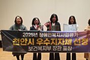 한방통신사 신태공 기자 | 천안시는 보건복지부 주관의 ‘2025년 지방자치단체 장애인복지사업 평가’에서 우수 지자체로 선정돼 보건복지부 장관 표창을 받았다고 5일 밝혔다. 보건복지부는 매년 전국 226개 기초자치단체를 대상으로 ▲일자리·경제활동 지원 ▲발달장애인·아동 돌봄 ▲서비스 전달체계 ▲이동권·접근성 ▲재난 대응 및 정보격차 해소 등 정량·정성·가점 지표를 종합 평가해 우수 지자체를 선정하고 있다. 천안시는 장애인직업재활시설 확충, 일자리사업 확대, 중증 장애인생산품 우선구매율 향상, 만성중증장애인 PT 지원, 발달장애인 주간활동서비스·방과후활동·장애인 활동서비스 제공기관 및 발달재활서비스 기관 확대 등에 높은 평가를 받았다. 특히 촘촘한 복지체계를 구축하고 돌봄서비스 사각지대 해소를 위해 노력해 주목받았다. 기관 표창과 함께 이날 전영아 장애인지원팀장은 장애인복지사업 유공으로 보건복지부장관 표창을 받았다. 윤은미 복지정책국장은 “천안시가 꾸준히 다양하고, 폭넓은 장애인복지정책을 추진해 온 결과가 우수 지자체 선정으로 이어져 매우 뜻깊게 생각한다”며 “앞으로도 장애인이 행복한