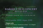 한방통신사 신다은기자 기자 | 담양군문화재단은 오는 28일 오후 5시 담빛예술창고 문예카페에서 『2025 담빛예술창고 송년특별연주회 ‘바로크 듀오 콘서트’』를 진행한다고 밝혔다. 이번 공연은 2015년부터 꾸준히 진행해 왔던 담빛예술창고 대나무 파이프 오르간 정기연주회의 일환으로, 한 해를 마무리하는 의미에서 바로크 시대의 대표적 악기인 비올라 다 감바와 듀오 콘서트 형식을 빌어 서정성과 장엄함의 조화로움을 선사할 예정이다. 국내 유일의 대나무 파이프 오르간 연주는 담빛예술창고 정기연주회 상임연주자 안애경의 연주와 곡해설이 함께 곁들여지며, 일상에서 쉽게 접하기 어려운 악기인 비올라 다 감바 연주는 국내외에서 활발히 활동하며 한국을 대표하고 있는 강효정 연주자가 맡았다. 재단 관계자는, “단순한 음악 감상을 넘어, 바로크 시대 악기의 예술적 가치와 담양이 지닌 문화적 특성을 함께 체감하며 한 해를 편안하고 따스하게 마무리할 수 있기를 바라는 마음을 담아 준비한 공연이다.”고 말하며, “담양의 경관인 관방천과 관방제림의 풍치를 가득 느낄 수 있는 문화재생공간 담빛예술창고 문예카페에 방문하여 2025년 한 해를 되