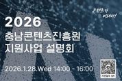 한방통신사 신유철기자 기자 | (재)충남콘텐츠진흥원(원장 김곡미)은 오는 1월 28일 오후 2시, 충남콘텐츠기업지원센터 이벤트홀에서 ‘2026년 지원사업 설명회’를 개최한다고 밝혔다. 이번 설명회는 2026년도 충남콘텐츠진흥원 지원사업 전반에 대한 이해를 돕기 위해 마련된 자리로, 도내 콘텐츠 기업과 창작자, 예비 창업자 등 관계자를 대상으로 주요 지원사업의 내용과 신청 절차, 향후 일정 등을 종합적으로 안내할 예정이다. 설명회에서는 ▲2026년 주요 지원사업 방향 ▲사업별 지원 내용 ▲주요일정 및 유의사항 ▲질의응답 등이 진행되며, 참석자들은 사업 담당자와 직접 소통하며 사업 참여에 필요한 실질적인 정보를 확인할 수 있다. 김곡미 원장은 “2026년 지원사업을 준비하는 기업과 창작자들이 사업 전반을 체계적으로 이해할 수 있도록 기획됐으며, 현장의 의견을 직접 듣고 사업 운영에 반영해 나갈 계획”이라고 밝혔다. 설명회는 사전 신청자에 한해 참여 가능하며, 신청 방법 및 세부 내용은 충남콘텐츠진흥원 홈페이지를 통해 확인할 수 있다. [뉴스출처 : 충남콘텐츠진흥원]