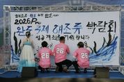 한방통신사 신다은기자 기자 | 완도군은 ‘청정 완도 가을 섬 여행’ 행사 마지막 날인 10월 26일 해변공원에서 ‘2026 Pre 완도국제해조류박람회’ 성공 개최를 기원하는 퍼포먼스를 진행했다. 2026 Pre완도국제해조류박람회는 완도의 대표 해양자원인 해조류와 전복을 주제로 2026년 5월 2일부터 7일까지 6일간 해변공원 일원에서 열리며 국제 심포지엄, 수출 상담회 등 다양한 프로그램이 진행될 예정이다. 이날 보여준 퍼포먼스는 ‘해조류, 전복하면 완도여라! 2026 Pre 완도국제해조류박람회 성공 개최를 기원합니다!’라는 문구를 캘리그라피로 힘차게 써 내려갔다. 이범우 완도부군수와 지민, 최정욱 완도군의회 의원, 어린이가 무대에 올라 응원의 글을 추가해 박람회 성공 개최를 기원하는 메시지가 풍성하게 완성됐다. 퍼포먼스 종료 후 박람회 추진위원회 위원들과 내빈들은 무대에 올라 박람회 성공 개최를 기원하는 구호를 함께 힘차게 외쳤다. 군 관계자는 “모두가 한마음으로 완도국제해조류박람회가 성공적으로 개최되길 기원하는 시간이어서 뜻깊었다”면서 “해조류의 가치와 완도의 위상을 드높일 수 있도