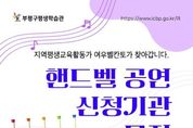 한방통신사 신유철기자 기자 | 부평구평생학습관은 지역사회 문화복지 확대와 평생교육 활성화를 위해 ‘핸드벨 파견공연’ 신청기관을 4월 6일부터 23일까지 모집한다. 이번 사업은 지역 내 평생교육기관 및 복지시설 등을 대상으로 운영되며, 핸드벨 연주를 통해 어르신과 지역 주민에게 정서적 안정과 문화예술을 접할 수 있는 기회를 제공하고자 마련됐다. 지역평생교육활동가로 양성된 핸드벨 지도사 12명이 공연에 참여한다. 이들은 따뜻한 선율의 연주를 선사하며, 각 기관 행사와 프로그램에 활력을 더할 것으로 기대된다. 파견공연은 4월부터 11월까지 운영되며, 참여 기관은 사전 일정 협의를 통해 무료로 지원받을 수 있다. 핸드벨 파견공연 신청은 부평구평생학습관 누리집 공지사항을 통해 신청할 수 있으며, 포스터 내 QR코드를 통해 자세한 사항을 확인할 수 있다. 기타 문의는 평생학습관으로 하면 된다. 부평구 관계자는 “이번 사업을 통해 지역 내 다양한 기관에 문화예술 공연을 보다 쉽게 제공할 수 있을 것으로 기대한다”며 “공연이 필요한 기관의 많은 관심과 참여를 바란다”고 밝혔다. [뉴스출처 : 인천
