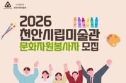 한방통신사 신태공 기자 | (재)천안문화재단은 오는 19~ 30일 천안시립미술관 문화자원봉사자를 모집한다고 14일 밝혔다. 문화자원봉사자로 선발되면 오는 3월부터 내년 2월까지 관람 안내, 전시·교육·행사 지원 등의 활동을 하게 되며, 봉사실적 인정, 기초·전문 교육, 소정의 활동비 지급 등의 혜택이 제공된다. 모집 대상은 문화예술에 관심이 있는 20세 이상 성인으로, 1차 서류 심사와 2차 인터뷰 심사 등을 통해 내달 30명 내외를 선발할 예정이다. 지원 신청은 천안시립미술관 누리집에 게재된 공고문을 확인한 후 신청서 양식을 내려받아 담당자 이메일로 접수하면 된다. 자세한 사항은 천안시립미술관 누리집을 참고하거나 시각예술팀으로 문의하면 된다. [뉴스출처 : 충청남도천안시]