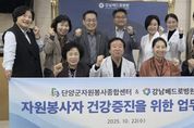 한방통신사 권영분기자 기자 | 충북 단양군자원봉사종합센터는 지난 22일 강남베드로병원과 자원봉사자의 건강복지 증진을 위한 업무협약을 체결했다고 밝혔다. 이번 협약은 단양군 자원봉사자들의 건강관리 강화를 통해 안정적인 봉사활동 환경을 조성하고, 지역사회 자원봉사 활성화를 도모하기 위해 추진됐다. 양 기관은 상호 협력체계를 구축해 의료서비스의 질을 높이고, 자원봉사자들이 보다 건강하게 봉사활동에 참여할 수 있도록 지원하기로 했다. 협약에 따라 강남베드로병원은 자원봉사자에게 건강검진, 진료, 사후관리 등 전반적인 의료서비스를 제공하고, 비급여 진료비 감면 혜택과 자원봉사자 맞춤형 종합검진 패키지도 운영할 예정이다. 단양군자원봉사센터는 대상자들의 의료 편의 제공과 홍보를 지원하며, 의료서비스 이용 접근성을 높이는 데 협조한다. 홍민우 단양군자원봉사종합센터장은 “자원봉사자의 건강은 단양군 자원봉사의 든든한 기반”이라며 “이번 협약을 통해 자원봉사자들이 전문적이고 합리적인 의료서비스를 받을 수 있게 되어 매우 뜻깊다”고 말했다. 윤민하 강남베드로병원장은 “의료서비스 접근이 어려운 지역