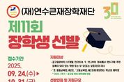 한방통신사 신유철기자 기자 | (재)연수큰재장학재단은 미래 지역사회를 이끌어 갈 우수 인재 발굴과 양성을 위해 제11회 장학생을 선발한다. 이번 장학생은 ▲복지, ▲특기(개인), ▲특기(단체), ▲연수꿈응원, ▲학업우수, ▲연수큰재(다년간) 등 총 6개 분야에서 지원자를 모집하며, 지원 규모는 약 1억 8천만 원에 달한다. 특히 올해는 장학생 지원 기준을 개선하고 추천권자를 조정하는 등 예년에 비해 보다 폭넓은 학생들에게 기회를 제공하는 방향으로 개편됐다. 선발 절차는 ▲공고 및 접수(9월 24일~10월 31일), ▲서류심사, ▲연수큰재(다년간) 면접 심사 및 선발 심의위원회 심의, ▲재단 이사회 최종 확정 순으로 진행된다. 선발 결과는 11월 말에 발표할 예정으로 자세한 사항은 연수구청 누리집 공고문을 통해 확인할 수 있다. 이재호 연수구청장은 “연수큰재장학재단은 미래 꿈나무들이 자신의 꿈을 마음껏 펼칠 수 있도록 지원하고 있다.”라며 “앞으로도 내실 있는 다양한 장학사업을 통해 교육 기회의 균등과 인재 양성에 최선을 다하겠다.”라고 말했다. [뉴스출처 : 인천시 연수구]