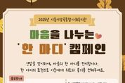 한방통신사 신유철기자 기자 | 시흥시장곡종합사회복지관은 연말을 맞아 지역사회에 따뜻한 마음을 전하기 위한 ‘마음을 나누는 한 마디’ 캠페인을 진행한다. 이번 캠페인은 이웃을 향한 응원의 말, 위로의 말, 사랑의 말을 담은 짧은 문장을 시민들로부터 응모 받아 서로에게 위로와 용기를 건네는 나눔의 장을 만들기 위해 마련됐다. 참여자는 직접 창작한 문장 또는 문학 작품 속 인용문 중 마음을 전하고 싶은 한 문장을 제출할 수 있다. 응모 기간은 11월 3일부터 11월 14일까지이며, 시흥시민이라면 누구나 참여할 수 있다. 참여 방법은 시흥시장곡종합사회복지관 1층 복도 현장 신청 또는 온라인으로 하면 된다. 선정된 문장은 내부 심사를 거쳐 캘리그래피 작품으로 제작되며, 오는 12월 시흥시장곡종합사회복지관 복도갤러리에서 전시된다. 전시된 작품은 시민들에게 한 해를 따뜻하게 마무리할 수 있는 작은 위로의 메시지로 전달될 전망이다. 시흥시장곡종합사회복지관 관계자는 “짧은 문장이지만, 시민 한 사람 한 사람의 따뜻한 마음이 모여 이웃에게 큰 위로가 될 것”이라며 “많은 시민이 이번 캠페인에 참여해 따뜻한 시흥을 함