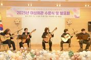 한방통신사 양호선기자 기자 | 횡성군은 12일 여성회관 대강당에서 강사와 수강생 등 250여 명이 참석한 가운데 2025년 여성회관 교육 수료식 및 발표회를 성황리에 개최했다. 올해 여성회관 교육프로그램은 4개 분야 31개 과목을 상하반기 각 4개월씩 운영하여 568명이 수료했으며, 수료식은 그간 수료생들의 성실한 참여와 노력을 격려하는 자리로 마련됐다. 2부 발표회에서는 기타교실을 포함한 총 6개 강좌가 다채로운 공연을 선보였으며 관람객들은 수강생들의 열정과 성과를 함께 나누며 큰 호응을 보냈다. 또한, 캘리그라피, 서양화, 섬유채색, 핸드페인팅, 어반스케치 등 5개 강좌의 작품 전시회가 함께 열려 수강생들이 그동안 갈고닦은 솜씨를 선보이는 기회가 됐다. 특히 자격증 취득 과정에서는 올 상반기에만 GTQ포토샵 1급 등 4개 과목에서 총 26개의 자격증을 취득했으며, 연말 자격시험 결과까지 더할 경우 수료생들의 자격 취득 실적은 더욱 늘어날 전망이다. 김홍석 군 가족복지과장은 “여성회관 교육 프로그램을 통해 군민들이 새로운 지식과 기술을 배우며 자기계발과 역량을 높이고, 건전한 여가와 문화를 향유할