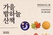한방통신사 신유철기자 기자 | 의정부과학도서관은 10월 30일부터 11월 1일까지 의정부천문대에서 특별 관측 행사 ‘가을 밤하늘 산책’을 운영한다. 이번 행사는 깊어가는 가을밤, 시민들이 천체 관측을 통해 자연과 과학의 아름다움을 체험할 수 있도록 마련했다. 행사는 오후 7시부터 9시까지 진행된다. 전문 해설과 함께 실제 관측을 체험할 수 있는 참여형 행사로 ▲달과 토성 관측 ▲천문우주 영상물 시청 ▲전시실 체험 ▲소원카드 달기 등으로 구성된다. 참여자들은 달과 토성의 고리를 직접 관측하고, 소원카드에 각자의 바람을 담아 별빛 아래에 걸어보는 체험도 즐길 수 있다. 행사는 과학문화에 대한 시민의 관심을 높이고 가족 단위의 참여를 확대하기 위해 무료로 진행한다. 별도의 사전 접수 없이 행사 당일 현장에서 참여할 수 있다. 과학도서관 관계자는 “의정부천문대가 과학과 자연이 어우러진 문화공간으로 자리잡을 수 있도록 앞으로도 다양한 프로그램을 운영할 것”이라며 “이번 특별 관측을 통해 가족과 함께 밤하늘을 바라보며 뜻깊은 시간을 보내길 바란다”고 말했다. [뉴스출처 : 경기도 의정부시]