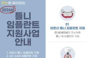 한방통신사 신유철기자 기자 | 거창군 보건소는 오는 9일부터 27일까지 치아 상실로 식사와 일상생활에 불편을 겪고 있는 저소득층을 대상으로 틀니, 임플란트 지원사업 신청을 받는다. 이번 지원사업은 치아 기능이 저하된 어르신들에게 틀니와 임플란트 시술 비용을 지원함으로써, 경제적 부담을 덜고 건강한 노후생활을 돕기 위해 마련됐다. 신청 대상은 거창군에 주소를 둔 65세 이상 저소득층 어르신과 만 60∼64세 그리고 중증장애인 의료급여 수급권자, 차상위 본인 부담 경감자, 건강보험료 기준에 해당하는 대상자이다. 신청 방법은 보건소, 보건지소·진료소, 읍·면행정복지센터에서 신분증과 건강보험료 납부영수증 등 구비서류를 갖춰 신청하면 된다. 어르신 틀니 임플란트 지원사업은 보험 틀니(전부·부분), 보험 임플란트 1인 최대 2개까지 지원 가능하며, 기존 건강보험으로 임플란트를 2개 식립한 경우는 제외된다. 60∼64세 저소득층 임플란트 지원사업은 비보험 임플란트 개당 70∼100만 원까지 지원하고, 1인 최대 2개까지 지원 가능하다. 중증장애인 치과 진료비 지원사업의 경우 연령제한은 없으며 틀니, 임플란트,