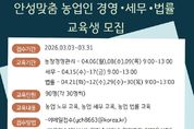 한방통신사 신유철기자 기자 | 안성시농업기술센터가 지역 농업인의 안정적인 영농 활동을 돕기 위해 오는 31일까지 ‘안성맞춤 농업인 경영·세무·법률 교육’ 교육생을 모집한다. 이번 교육은 전문가 특강을 통해 농가 운영 중 발생할 수 있는 경영적, 법적 문제를 사전에 예방하고 해결할 수 있는 역량을 키워주기 위해 마련됐다. 교육은 오는 4월 6일부터 30일까지 주제별 지정된 날짜에 진행된다. 모집 분야는 ▲농업 경영 ▲농업 세무 ▲농업 법률 등 3개 과정이며, 분야별로 30명씩 총 90명을 선발한다. 신청 인원이 초과할 경우 내부 선발 기준에 따라 교육생을 최종 선정할 예정이다. 신청 자격은 농업 경영에 관심 있는 안성시민이라면 누구나 가능하며, 접수는 3월 31일까지다. 참여를 희망하는 시민은 이메일을 보내거나 농업기술센터 농업지도과(보개원삼로 219)를 방문해 신청하면 된다. 시 관계자는 “농업인의 눈높이에 맞춘 경영·법률·세무 전문가 특강이 농가 역량을 강화하는 좋은 기회가 될 것”이라며, “안성 농업의 내실을 다지고 싶은 시민 여러분의 많은 관심과 참여를 바란다”고 말했다. [뉴스출처 : 경