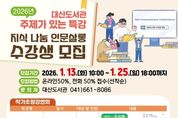 한방통신사 신태공 기자 | 서산시는 시민의 교양 함양과 실생활에 도움이 되는 지식 제공을 위해 오는 1월 13일부터 1월 25일까지 2026년 주제가 있는 특강『지식 나눔 인문살롱 』수강생을 모집한다. 이번 특강은 서산시민을 대상으로 2월부터 4월까지 매월 1회 반려동물을 잃은 슬픔을 건강하게 대처하는 심리적 회복방법에 대해 나누는 ▲어서오세요, 펫로스 상담실입니다 조지훈 작가 초청 강연회, 자녀와 함께 신문을 활용한 문해력 향상 방법을 소개하는 ▲초등교과서부터 수능까지, 문해력을 키우는 신문 읽기 이혜진 작가 초청 강연회, 인공지능 시대에 필요한 자녀의 진로 설계 및 학습 전략을 안내하는 ▲AI시대를 대비하는 우리아이 교육, 입시 로드맵 심정섭 작가 초청 강연회까지 3개 특강이 진행된다. 수강신청은 도서관 누리집 및 전화를 통해 선착순으로 접수한다. 자세한 사항은 도서관 누리집 공지사항을 참고하거나 도서관에 문의 하면 된다. 시립도서관 관계자는“각 분야 전문가들의 생생한 경험과 노하우를 직접 들을 수 있는 소중한 기회가 될 것.”이라며 “앞으로도 시민의 지적 성장을 돕는 다양한 특강을 운영하겠다