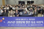 한방통신사 신유철기자 기자 | 수원특례시는 18일 팔달문화센터 예당마루홀에서 ‘2025년 정원문화 발전 유공 시상식’을 열었다. 정원문화 발전에 기여한 시민과 단체 등에 수원시장상(47개)과 수원시의회 의장상(7개)을 수여했다. 시상은 표창장·감사패 수여, 시민정원 경연대회, 베스트 관리상, 올해의 정원인상 등 분야별로 진행됐다. 지난 10월 효원공원에서 열렸던 ‘2025년 수원시 시민정원 경연대회’ 수상팀들을 시상했다. 하나의 물방울이 만들어내는 무한한 생명의 파장을 표현한 ‘완뚝원정대’의 ‘리플(ripple) 가든’이 대상을 받았다. 어린 꽃이 꿈꾸는 산의 이미지를 담은 ‘진달래동산 꽃뫼’ 팀의 ‘어린 꽃이 꿈꾸는 뫼(산)’이 최우수상, 빛과 생명의 흐름을 표현한 ‘빛나게’ 팀의 ‘Flowing Light, Flowering Life(플로잉 라이트, 플라워링 라이프’가 우수상을 받았다. 이재준 수원시장은 “도심 속 열린 정원은 시민에게 휴식처가 되고, 기후 위기 대응에는 힘이 된다”며 “정원을 가꾼 수상자 노력에 감사하며 시민 일상에 초록이 늘도록 지원을 이어가겠다”고 말했다. [뉴스출처 :