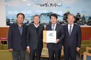 한방통신사 신유철기자 기자 | 제주시 조천농협(조합장 김진문)과 전라북도 남부안농협(조합장 최우식)은 11월 19일 시장 집무실에서 고향사랑기부금 상호 기탁식을 갖고, 상생 협력을 다짐했다. 이번 기탁식은 김완근 제주시장을 비롯해 양 농협 조합장, 농협 관계자 등 10여 명이 참석한 가운데 진행됐다. 각 농협 임직원들은 고향사랑기부제의 취지에 공감하며 십시일반 모은 500만 원을 상호 기부함으로써 기부문화 확산과 지역발전에 힘을 보태겠다는 의지를 표명했다. 이날 상호 기탁은 양 지역 농업인들에게 용기와 희망을 전하고, 앞으로 더욱 다양한 교류와 협력이 이어질 것으로 기대된다. 김완근 제주시장은 “농협 구성원 모두가 한마음으로 상호 기부에 동참해 주셔서 감사드린다”며, “이번 사례처럼 농협 간 협력을 통해 지역사회가 함께 성장하고 발전하는 상생의 길이 더욱 넓어지길 기대한다”고 밝혔다. 한편, 김완근 제주시장은 취임 이후 직거래 확대, 농산물 유통구조 개선, 농산물우수관리(GAP) 인증 확대, 1차 산업 예산 증액 등 제주 농업의 생산과 유통 분야의 혁신을 지속적으로 추진해 왔다. 이번