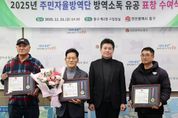 한방통신사 신유철기자 기자 | 김정헌 인천 중구청장이 올 한 해 구민 건강 증진과 쾌적한 환경 조성을 위해 헌신적으로 활동한 주민자율방역단 단원들에게 감사와 격려의 뜻을 전했다. 구는 이를 위해 지난 21일과 24일 각각 중구청 1청사와 2청사에서 ‘2025년 주민자율방역단 유공 표창 및 감사패 수여식’을 열고, 적극적이고 모범적인 활동을 펼친 모범 단원 총 8명에게 유공자 표창을 전달했다. 원도심에서는 신포동 권일구 단원, 신흥동 이재영 단원, 도원동 조정순 단원, 율목동 김명분 단원, 동인천동 임옥순 단원이, 영종국제도시에서는 영종1동 강현선 단장, 운서동 김후동 단원, 용유동 한태산 단원이 모범 단원으로 선정됐다. 또한, 활동 실적이 가장 뛰어나고 여름철 집중 방역 기간에 헌신적으로 활동하며 지역 주민 건강 보호에 크게 이바지한 ‘연안동 주민자율방역단’에게는 단체 부문 ‘감사패’가 수여됐다. 실제로 연안동 주민자율방역단은 하절기 핵심 방역 활동으로 주요 취약지 64개소를 중심으로 밀도 높은 방역을 정기적으로 수행하며 탁월한 성과를 보였다. 올해 관내 12개 동 주민자율방역단은 5월