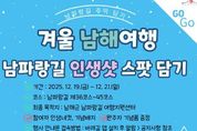 한방통신사 신유철기자 기자 | 아름다운 쪽빛 바다가 펼쳐진 남해의 겨울을 온전히 느낄 수 있는 특별한 걷기 행사가 오는 12월 19일부터 21일까지 3일간 남파랑길 코스 및 남파랑여행지원센터에서 열린다. 남해군 관광진흥과는 코리아둘레길 중 남해 구간에 해당하는 ‘남파랑길’의 매력을 알리고, 연말을 맞아 남해를 찾은 가족, 연인, 친구 단위 관광객들에게 잊지 못할 추억을 선사하기 위해 이번 행사를 기획했다. 행사 코스는 남해의 비경을 간직한 남파랑길 제36코스부터 제45코스까지다. 참여를 원하는 관광객은 스마트폰에 ‘남해바래길’ 앱을 설치한 뒤 원하는 코스를 선택하고, ‘따라가기’ 기능을 활성화하여 걸으면 된다. 참가자들은 각 코스를 걸은 후 최종 목적지인 남파랑길여행지원센터(이동면 성남로 97)에 도착하여 걷기 기록을 인증하면 다양한 혜택을 받을 수 있다. 남해군은 참여 열기를 높이기 위해 풍성한 기념품을 마련했다. 단순 걷기 참여자(선착순 200명)에게는 기념 배지를, 5km 이상 구간을 걸은 참여자(선착순 100명)에게는 소정의 기념품을 증정한다. 특히 해