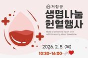 한방통신사 신유철기자 기자 | 거창군은 동절기 한파와 학생 방학 기간이 겹치며 전국적으로 혈액 수급에 어려움이 지속되고 있는 가운데, 헌혈 참여를 독려하기 위해 ‘사랑의 헌혈 행사’를 실시한다고 28일 밝혔다. 이번 행사는 오는 2월 5일 오전 10시 30분부터 거창군청 앞 로터리에서 열리며, 대한적십자사 경남혈액원 헌혈버스 2대가 현장을 방문할 예정이다. 헌혈은 만 16세 이상 만 69세 이하(남성 50kg, 여성 45kg 이상)의 건강한 군민이라면 누구나 참여할 수 있다. 다만 만 65세 이상은 60~64세 사이 헌혈 경험이 있는 경우에만 가능하다. 헌혈 참여시에는 신분증을 지참해야 하며, 헌혈 후에는 소정의 기념품과 헌혈증서가 제공된다. 2026년 헌혈 일정은 거창군 보건소 누리집을 통해 확인 할 수 있으며, 군은 더 많은 군민이 헌혈에 동참할 수 있도록 지속적인 안내와 홍보를 이어갈 예정이다. 거창군 관계자는 “추운 날씨 속에서도 작은 용기가 누군가의 생명을 살릴 수 있다”며 “군민 여러분의 따듯한 관심과 헌혈 참여를 부탁드린다”고 말했다. 한편, 거