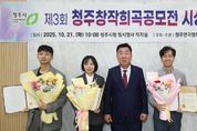한방통신사 권영분기자 기자 | 청주시가 후원하고 (사)청주연극협회가 주최‧주관한 제3회 청주 창작희곡 공모전 시상식이 21일 임시청사 직지실에서 개최됐다. 이번 공모전은 한국 연극계의 새로운 목소리를 발굴하고 창작희곡의 활성화를 도모하기 위해 마련됐으며, 전국에서 다양한 소재와 형식을 담은 77편의 작품이 출품되는 등 뜨거운 관심을 모았다. 심사는 연출가, 극작가 등 연극 전문인으로 구성된 심사위원단이 맡아 작품의 완성도, 독창성, 실연성의 3개 항목에 대한 심사를 진행해 최종 3개의 작품을 선정했다. 최종 선정된 작품은 독창성이 높고 무대화의 가능성이 높다고 평가된 작품으로 대상(상금 1,500만원)은 이홍이 작가의 ‘모스크바의 바다’, 최우수상(상금 1,000만원)은 노동훈 작가의 ‘고민수의 변수 통제 시뮬레이션’, 우수상(상금 500만원)은 서준교 작가의 ‘다이치’에 영광이 돌아갔다. 수상작들은 저작권 계약을 맺고 청주 극단에 공연 제작 우선권을 지원하게 된다. 상을 수여한 이범석 청주시장은 “창작희곡은 한국 연극의 뿌리를 지탱하는 중요한 장르로, 이번 공모전을 통해 참신한 극작가