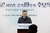 한방통신사 신태공 기자 | 아산시는 24일, 아산시청 앞 故 최종곤 사무관 흉상 앞에서 ‘故 최종곤 사무관 순직 19주기 추모식’을 거행했다. 이번 추모식은 2006년 12월, 공무 수행 중 불의의 사고로 순직한 故 최종곤 사무관의 숭고한 희생과 헌신을 기리고, 시민의 안전을 위해 헌신한 공직자의 사명과 책임을 되새기기 위해 마련됐다. 이날 행사에는 유가족을 비롯해 김범수 아산시 부시장, 맹의석 아산시의회 부의장, 동료 공직자 등 다수가 참석해 고인을 추모했다. 김범수 부시장은 추모사에서 “故 최종곤 사무관은 시민의 안전을 자신의 책무로 여기며 현장에서 묵묵히 소임을 다한 참된 공직자였다”며 “고인의 희생과 헌신은 오늘의 아산시 공직자들에게도 큰 울림과 책임으로 남아 있다.”고 말했다. 이어 “아산시는 고인의 뜻을 잊지 않고, 시민의 안전을 최우선으로 하는 행정을 이어 가겠다”고 밝혔다. 故 최종곤 사무관은 2006년 12월 24일, 송악면 국도 39호선에서 조류인플루엔자 확산 방지 업무를 수행하던 중 과속 차량에 의해 사고를 당해 순직했다. 고인은 생전 성실한 근무와 투철한 책임감으로 동료와 시민