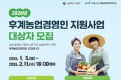 한방통신사 신유철기자 기자 | 의성군은 지역 농업의 미래를 이끌 전문 농업인을 육성하기 위해 2026년도 후계농업경영인 육성사업 대상자를 모집한다고 밝혔다. 후계농업경영인 육성사업은 성장 가능성이 높은 예비·청년 농업인을 선발해 안정적인 영농 기반을 마련할 수 있도록 지원하는 사업으로, 선정자에게는 농업 경영에 필요한 정책자금 융자 지원이 이루어진다. 융자 한도는 최대 5억 원이며, 고정금리 1.5%, 5년 거치 후 20년 원금균등분할 상환 방식으로 지원된다. 해당 자금은 농지 구입, 시설 설치, 농기계 구입 등 영농 기반 확충에 활용할 수 있다. 신청 기간은 1월 5일부터 2월 11일까지이며, 신청은 ‘농업e지’ 누리집을 통해 온라인으로 접수하면 된다. 신청 대상은 만 50세 미만으로 독립 영농경력 10년 미만인 농업인 또는 영농을 희망하는 자로, 농업계 관련 학교 졸업자 또는 농업 관련 교육 이수자여야 한다. 대상자는 연령, 영농경력, 영농계획의 타당성 등을 종합적으로 심사해 선발할 예정이다. 김주수 의성군수는 “후계농업경영인 육성사업은 초기 농업인의 자금 부담을 완화하
