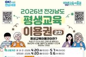 한방통신사 신다은기자 기자 | 순천시는 시민의 평생학습 기회 확대와 교육격차 해소를 위해 ‘2026년 전라남도 평생교육이용권’ 2차 신청 접수를 20일부터 시작한다고 밝혔다. 해당 사업은 경제적 사정으로 학습 참여가 어려운 시민에게 교육비를 지원하는 제도로, 선정 시 1인당 연간 최대 35만 원의 평생교육이용권을 지원받을 수 있다. 평생교육이용권 누리집을 통한 온라인 신청은 5월 7일까지 가능하며, 순천시 평생교육과 방문 신청은 5월 6일까지 접수한다. 신청 대상은 ▲일반(19세 이상) ▲AI·디지털(30세 이상) ▲노인(65세 이상)으로 구분되며, 각 대상별 기준에 따라 신청할 수 있다. 대상자는 자격 확인을 거쳐 저소득층을 우선 선발하고, 잔여 인원은 무작위 추첨으로 선정한다. 이용 기간은 2026년 8월 31일까지다. 이용권은 선정 후 전용 카드로 발급되며, 평생교육이용권 사용기관으로 등록된 온·오프라인 교육기관에서 수강료와 교재비 결제에 사용할 수 있다. 본인 명의로만 사용 가능하며, 지원 한도 내에서 이용해야 하고 미사용 금액은 기간 종료 시 자동 소멸된다. &n