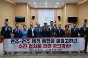 한방통신사 김성의 기자 | 완주군의회는 3일 제295회 임시회 제1차 본회의에서 서남용 의원이 대표 발의한 ‘완주-전주 행정통합 불권고 및 추진절차 전면 중단 촉구 결의안’을 만장일치로 채택했다. 이번 결의안은 완주군민의 압도적 반대에도 불구하고 전북자치도와 전주시가 일방적으로 추진 중인 행정통합 논의의 문제점을 지적하고, 관련 절차의 즉각 중단을 요구하는 내용을 담고 있다. 서남용 의원은 결의안을 통해 ▲완주군민의 뜻을 무시한 통합 논의 지속 ▲군정 안정성 및 행정력 낭비 ▲주민 간 갈등과 사회적 분열 심화 등을 문제점으로 지적했다. 이어 행정안전부 장관에게 통합 불권고 결정을 촉구하고, 전북자치도와 전주시에 절차 중단과 군민 사과를 요구하며, 정부에는 지역 균형 발전을 위한 실질적 정책 마련을 촉구했다. 완주군과 전주시 간 행정통합 논의는 이미 1997년, 2009년, 2013년 세 차례 추진됐으나, 모두 완주군민의 압도적 반대로 무산된 바 있다. 최근 여론조사에서도 완주군민의 약 71%가 통합에 반대하는 것으로 나타났으며, 찬성 측 단체 조사에서도 66%가 반대 의견을 보였다. &