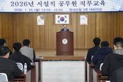 한방통신사 신유철기자 기자 | 창녕군은 26일 시설직 공무원 60명을 대상으로 2026년 예산실무 및 공사감독 능력 향상을 위한 ‘시설직 공무원 직무교육’을 실시했다. 이번 교육은 예산 편성부터 집행까지 예산실무와 설계도서 작성 및 해석으로 업무 능력을 배양하고 공사감독자의 직무능력 향상으로 견실시공을 도모하기 위해 마련됐다. 주요 내용으로 △예산 편성 및 집행 실무 △건설공사 단계별 감독 역할 및 주의점 △건축물 철거 등 분리 발주 분야 △토목 관련 용어 정리 및 감사지적 사례 등 실무에 필요한 핵심 주제로 구성됐으며, 신기술제품 우선구매율 제고를 위한 설명도 포함됐다. 성낙인 군수는 “이번 직무교육과 건설교통과장 주재 시설직 학습동아리 운영으로 직원의 기술력 강화와 실무 지식 공유, 문제 해결 능력을 높이고, 업무 전문성 확보로 행정 신뢰도와 주민 만족도를 높이겠다”고 말했다. [뉴스출처 : 경상남도 창녕군]