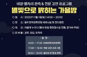 한방통신사 신유철기자 기자 | 동두천시시설관리공단은 오는 11월 1일 동두천자연휴양림에서 가을밤 하늘을 배경으로 별자리와 행성을 함께 관측하는 '천문행사 ‘별빛으로 밝히는 가을밤’'을 개최한다. 이번 행사는 시민이 자연 속에서 직접 천체를 관측하며 과학문화의 즐거움을 체험하고, 가족 단위 방문객에게는 휴식과 소통의 시간을 제공하기 위해 마련됐다. 행사는 오후 2시부터 8시까지 자연휴양림 어울림동 세미나실 및 잔디마당 일원에서 진행된다. 낮에는 태양 전용 망원경을 활용한 태양 관측 체험, 저녁에는 전문 강연과 함께 달·행성·별자리 관측 프로그램이 운영된다. 또한 시민 참여형 이벤트인 ‘별자리 퀴즈’도 열려 참가자들이 과학을 보다 쉽고 흥미롭게 접할 수 있도록 구성됐다. 이종진 동두천시시설관리공단 이사장은‘별빛으로 밝히는 가을밤’은 가족과 함께 별을 보며 자연의 아름다움과 과학의 신비로움을 동시에 느낄 수 있는 뜻깊은 행사”라며“앞으로도 시민이 함께 참여할 수 있는 ESG형 과학문화 프로그램을 지속적으로 추진하겠다”라고 밝혔다. [뉴스출처 : 경기도 동두천시]