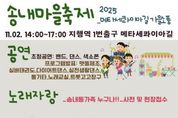 한방통신사 신유철기자 기자 | 동두천시 송내동 주민자치위원회는 오는 11월 2일 오후 2시부터 지행역 1번 출구 메타세콰이아길에서 ‘2025 송내마을축제’를 개최한다고 밝혔다. 이번 축제는 주민자치센터 프로그램 수강생을 비롯해 지역 학교, 동아리, 학원 등 다양한 주민이 참여해 주민자치 활성화와 지역 문화·예술 교류의 장을 마련하고자 기획됐다. 행사 당일에는 송내동 주민 노래자랑, 주민자치 프로그램 발표회·전시회, 초청공연, 체험부스, 벼룩시장, 먹거리 마당 등 다채로운 프로그램이 진행된다. 특히 주민이 직접 참여하는 노래자랑과 맷돌체조, 트롯고고장구, 실버태권도 등 7개 팀의 프로그램 발표회가 마련돼, 지역 주민들이 그동안 갈고닦은 실력을 선보일 예정이다. 또한 도자기 만들기, 팽이 꾸미기, 만년도장 만들기 등 가족 단위로 즐길 수 있는 체험부스도 함께 운영된다. 이번 축제는 송내동 주민의 화합과 자긍심을 높이는 것은 물론, 주민자치센터 프로그램 홍보와 신규 수강생 유치에도 도움이 될 것으로 기대된다. 아울러 지역 소상공인과 시민이 함께 참여하는 벼룩시장도 열려 지역경제 활성화에도 기여할 전망이다.
