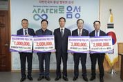 한방통신사 권영분기자 기자 | 음성군은 지난 20일 군수 집무실에서 관내 5개 기업체가 1000만원 상당의 후원금품을 음성군장애인체육회(회장 조병옥)에 기탁했다고 밝혔다. 이번 기탁에는 △(주)제일참 300만원 △(주)21세기소방 200만원 △(주)창영케미칼 200만원 △성본산업단지(주) 라면 등(200만원 상당) △은찬종합건설(주) 100만원 등 총 5개의 기업이 후원금품을 전달했다. 기탁받은 후원금품은 장애인 체육시설 개선, 훈련비 지원, 장애인 체육 프로그램 지원 등 음성군 장애인 체육 발전을 위해 사용될 예정이다. 기업 대표들은 “지역 장애인 체육 활성화를 위해 기업의 사회적 책임을 다할 수 있어서 뜻깊다”며 “관내 장애인들이 체육활동을 통해 건강한 삶을 이어가고, 꿈을 키울 수 있도록 계속 관심을 가지고 지원하겠다”고 밝혔다. 조병옥 음성군장애인체육회장은 “관내 기업들의 장애인 체육 저변확대를 위한 지속적인 관심과 지원에 감사드린다”며 “기탁된 후원금은 장애인들의 체육 참여 확대와 역량 강화 등 현장 중심 지원으로 소중히 사용하고, 내년 충북장애인도민체육대회의 성공적 개최를 위해 노력하겠다