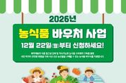한방통신사 신유철기자 기자 | 화성특례시는 저소득 취약계층의 영양 개선과 지역 농산물 소비 활성화를 위해 22일부터 ‘2026년 농식품 바우처 지원사업’ 신청을 받는다. 지원 대상은 생계급여(기준 중위소득 32% 이하) 수급자 중 임산부, 영유아, 아동, 청년을 포함한 가구로 1인 가구 월 4만 원, 4인 가구 월 10만 원 등 가구원 수에 따라 차등 지원된다. 지원 기간은 1월부터 12월까지 12개월이다. 지원 품목은 국산 채소, 과일, 육류, 잡곡, 두부류 등 신선 농산물을 구매할 수 있는 전자카드 형태로 제공되며, 농협 하나로마트, 편의점 등에서 사용할 수 있다. 지원 신청은 22일부터 주소지 관할 출장소 및 읍·면 행정복지센터를 방문하거나 온라인, ARS(☎1551-0857) 등을 통해 다양한 경로로 신청할 수 있으며, 2025년 사업 이용 가구로 지원 자격요건을 충족하는 경우 별도의 신청 절차 없이 자동 신청 처리될 예정이다. 기타 자세한 사항은 화성시청 농식품유통과 및 주소지 관할 출장소·읍·면 행정복지센터로 문의하면 된다. 신태식 농식품유통과장은 “이번 농식품 바우처 지원