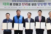 한방통신사 신유철기자 기자 | 경기도와 도청 3개 공무원노조는 악성민원 피해 특별휴가 부여 등이 담긴 단체협약에 합의했다. 김동연 경기도지사와 김진경 경기도의회 의장, 강순하 경기도청공무원 노동조합 위원장, 백승진 경기도통합공무원노동조합 위원장, 최형곤 전국공무원노동조합 경기도청지부 사무국장은 3일 경기도청 율곡홀에서 제7차 단체협약서에 서명했다. 김동연 지사는 “다들 격무에 시달리고 여러 가지 애로사항이 많을 텐데, 즐겁고 스스로 행복했으면 좋겠다. 그게 제 조직 관리와 인사 목표”라며 “직원들이 도청, 도의회로부터 케어를 받고 있다는 생각과 여건을 만들어야 한다. 줄탁동시(啐啄同時. 병아리가 알에서 나오기 위해서는 새끼가 안에서 울고 동시에 어미닭이 밖에서 쪼아야 한다)처럼 바깥에서 여건을 끊임없이 만들려고 노력하고 안에서는 스스로 공직생활을 하면서 즐거움을 찾는 것이 나아가 도민들에게도 좋은 일이라고 생각한다”고 말했다. 김 지사는 이어 “짧은 기간 동안에 서로 좋은 대화를 나누고 수용률 98.7%라는 결과를 받게 돼 기쁘다. 앞으로 끊임없이 대화를 나눴으면 좋겠고 그렇게 하기 위해 서로 간에 신뢰했으면