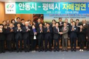 한방통신사 신유철기자 기자 | 평택시의회는 2월 27일, 안동시청에서 평택시-안동시 자매결연 협약식에 참석해 양 도시의 상생 발전을 다짐했다. 이날 협약식에는 평택시의회 이종원 의회운영위원장, 김영주 기획행정위원장을 비롯하여 정장선 평택시장 등 평택시 대표단이 참석하고 김경도 안동시의회 의장, 권기창 안동시장 등 안동시 대표단이 함께하며 상호 협력 의지를 다졌다. 협약식은 ▲협약서 서명 및 교환 ▲기념품 교환 ▲지역 농특산품 판로 개척 및 로컬푸드 교류 협력 방안 등이 논의됐다. 이어 안동 하회마을을 방문해 문화·관광 교류 확대에 대해서도 의견을 나눴다. 평택시의회 이종원 의회운영위원장은 “평택은 서해안의 관문이자 국제교류의 중심 도시이고, 안동은 깊은 전통과 유교 문화가 뿌리내린 선비문화의 본고장”이라며 “서로 다른 강점과 매력을 지닌 두 도시가 손을 맞잡는 의미는 매우 크다”라고 말했다. 이어 “양 도시의 상생과 우정이 시민이 체감할 수 있는 실질적인 성과로 이뤄지도록 평택시의회도 적극 지원하겠다”라고 밝혔다. 안동시의회 김경도 의장은 “평택시와의 자매결연은 전통과 산업이 만나 새로운 상생 모델