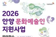한방통신사 신유철기자 기자 | 안양문화예술재단은 지역 예술인의 창작활동을 지원하고 문화예술 진흥을 도모하기 위한 ‘2026년 안양 문화예술인 지원사업’ 희망자를 오는 16일 17시까지 공개 모집한다. 이번 공모는 안양에서 활동하는 예술인과 예술단체를 대상으로 하며, 안정적인 창작환경 조성과 더불어 경기도 내 우수 예술인의 안양 유입을 통해 시민들에게 보다 풍성한 문화예술 향유 기회를 제공하는 것을 목적으로 한다. 총 사업 규모는 3억 2,630만원이며, 이 중 지원금은 2억 7,400만원이다. 특히 올해는 ‘정산 간소화’ 제도를 시범 도입하여 예술인의 행정부담을 줄이고 창작활동에 더욱 집중할 수 있는 환경을 조성할 계획이다. 재단 관계자는 “이번 지원사업을 통해 지역 예술생태계가 활성화되고, 시민들의 문화향유 기회가 확대됨으로써, 안양이 보다 풍요로운 문화도시로 도약하길 기대한다”고 밝혔다. [뉴스출처 : 경기도 안양시]