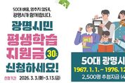 한방통신사 신유철기자 기자 | 광명시가 50대 중장년 시민의 배움 기본권 보장을 위해 올해도 평생학습지원금 지원을 이어간다. 시는 오는 3월 3일부터 13일까지 11일간 ‘2026년 광명시민 평생학습지원금’ 신청을 받는다고 26일 밝혔다. 광명시민 평생학습지원금은 생애 전환기를 맞은 50대 시민이 나이·소득·배경과 관계없이 배움을 지속할 수 있도록 생애 1회 1인당 30만 원의 평생학습이용포인트를 지원하는 사업이다. 시민 스스로 자신의 삶과 필요에 맞는 학습을 선택하도록 돕는 것이 핵심 목적이다. 박승원 광명시장은 “배움은 선택이 아닌 누구에게나 보장돼야 할 기본권”이라며 “시민이 나이나 환경의 제약 없이 언제든지 배움을 이어갈 수 있도록 평생학습 기반을 더욱 탄탄히 만들어가겠다”고 밝혔다. 신청 대상은 1967년 1월 1일부터 1976년 12월 31일 사이에 출생한 50대 광명시민이다. 광명시에 1년 이상 계속 거주했거나, 거주기간을 합산해 5년 이상 거주하고 있어야 한다. 시는 총 2천500명을 선정해 지원한다. 59세(1967년생)는 올해가 마지막 지원 대상임을 고려해 우선 선정하